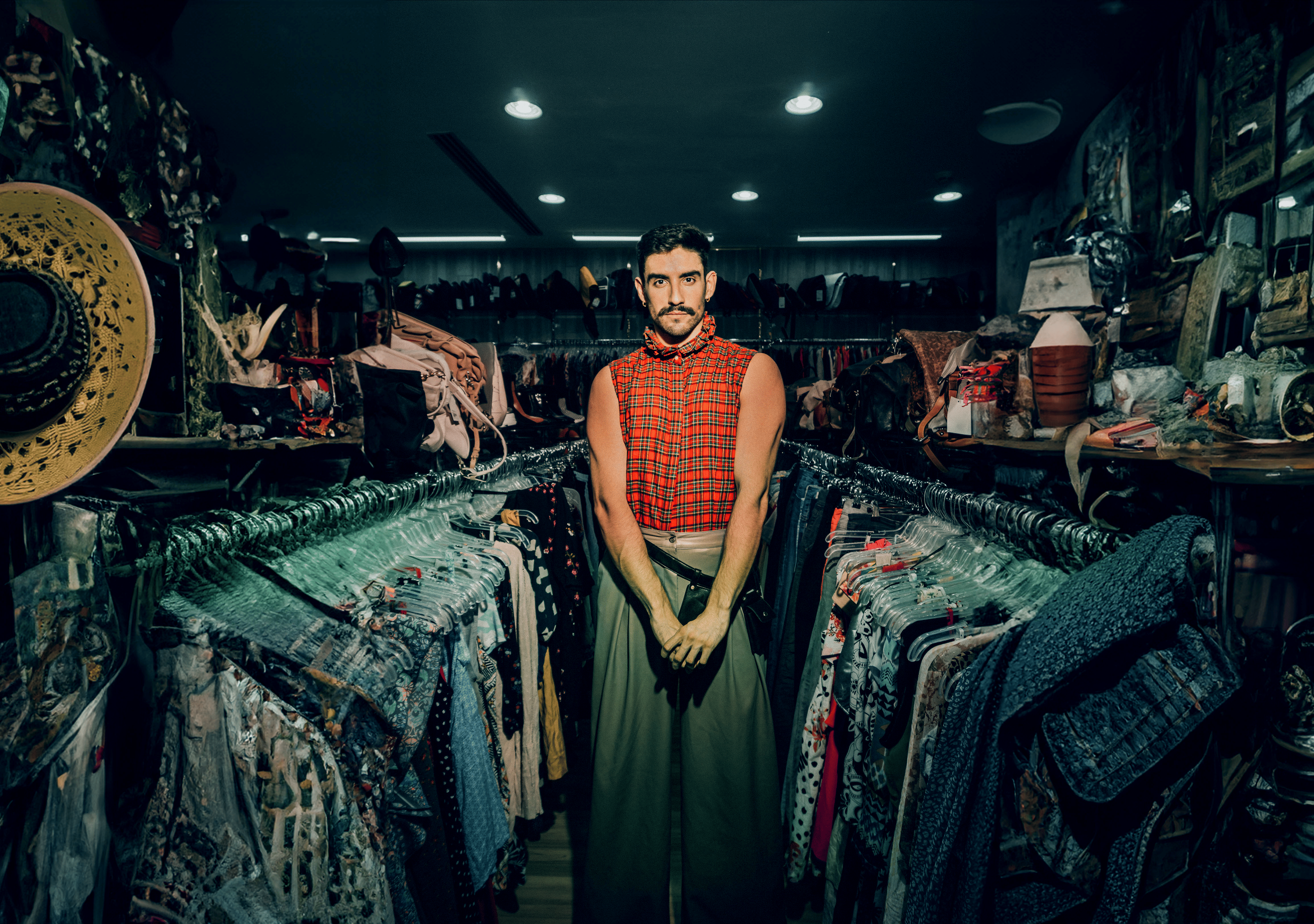 At night, these streets come alive; neon lights glow against the dark sky, and the thrift stores stay open late, buzzing with energy. People move between shops, chatting and laughing, while the sound of music and distant traffic fills the air. Shoppers take their time, sifting through racks under the warm, flickering lights, searching for their next great find.